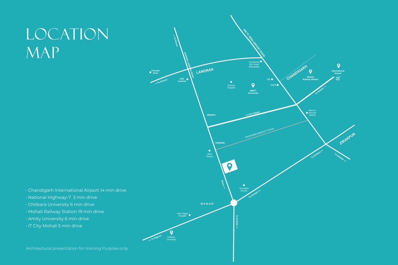 • Site Address: The Lutyens Site Office: Landran-Banur Road, Near Tangori College, Banur, Mohali, Punjab 140601